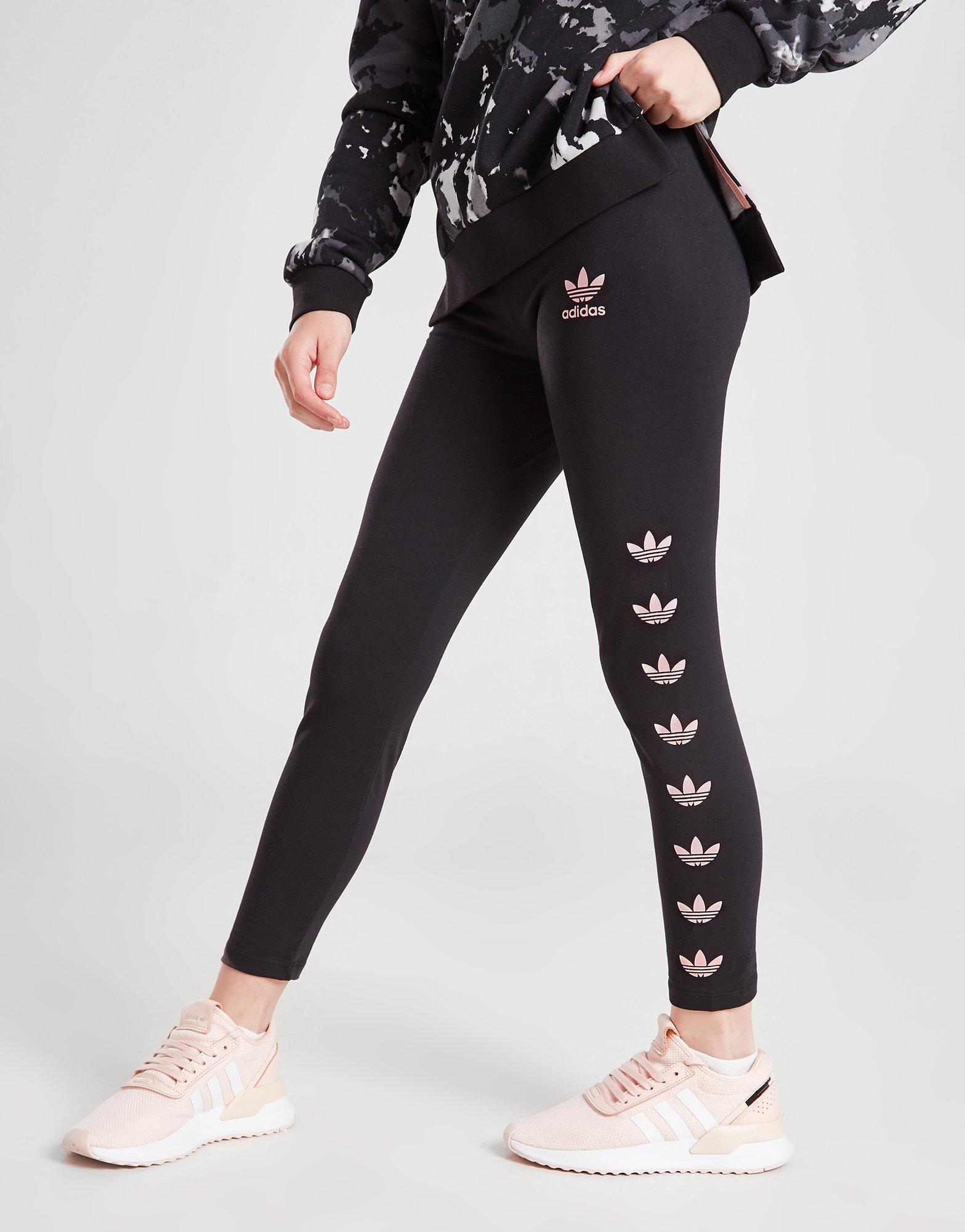 Adidas repeating trefoil. Similar ones also available. Size FitStandard fit has a relaxed easy feel Pants feature elastic waistband with adjustable drawcord Product FeaturesFleece fabric has a midweight feel. Adidas Originals Trefoil Womens Leggings Black.